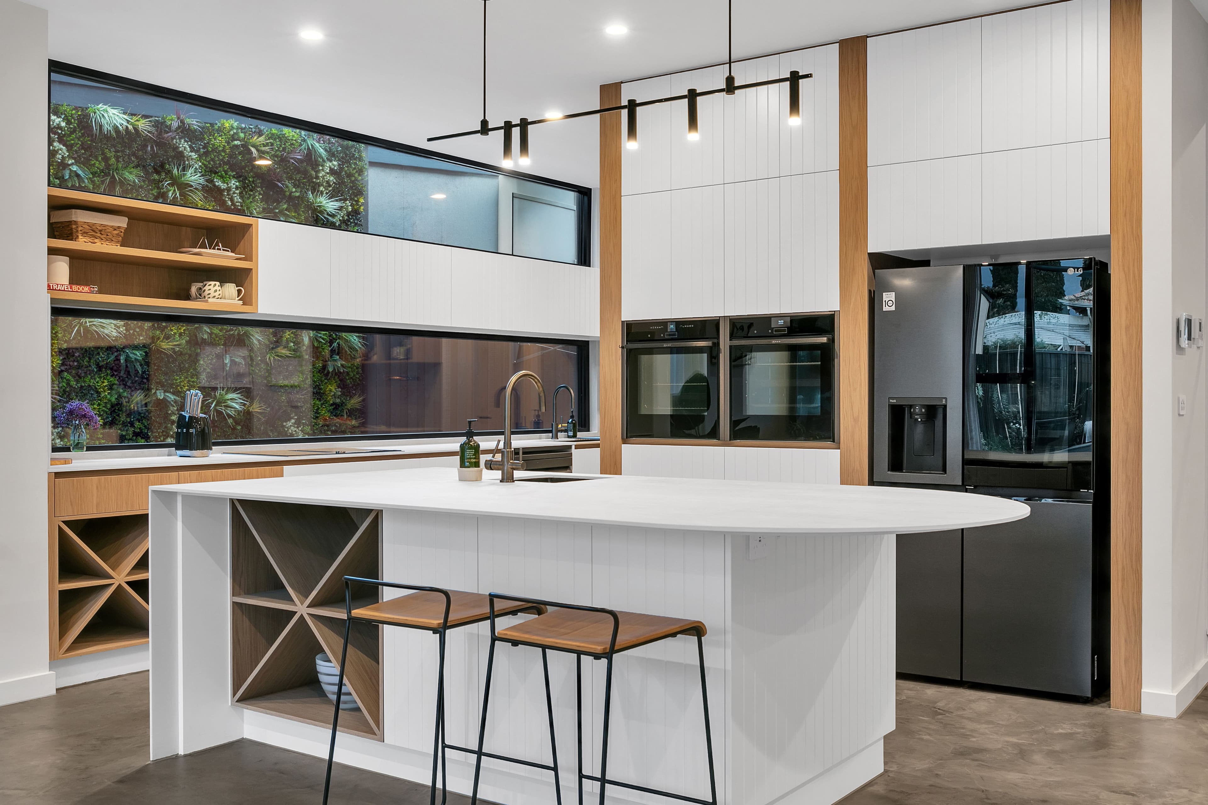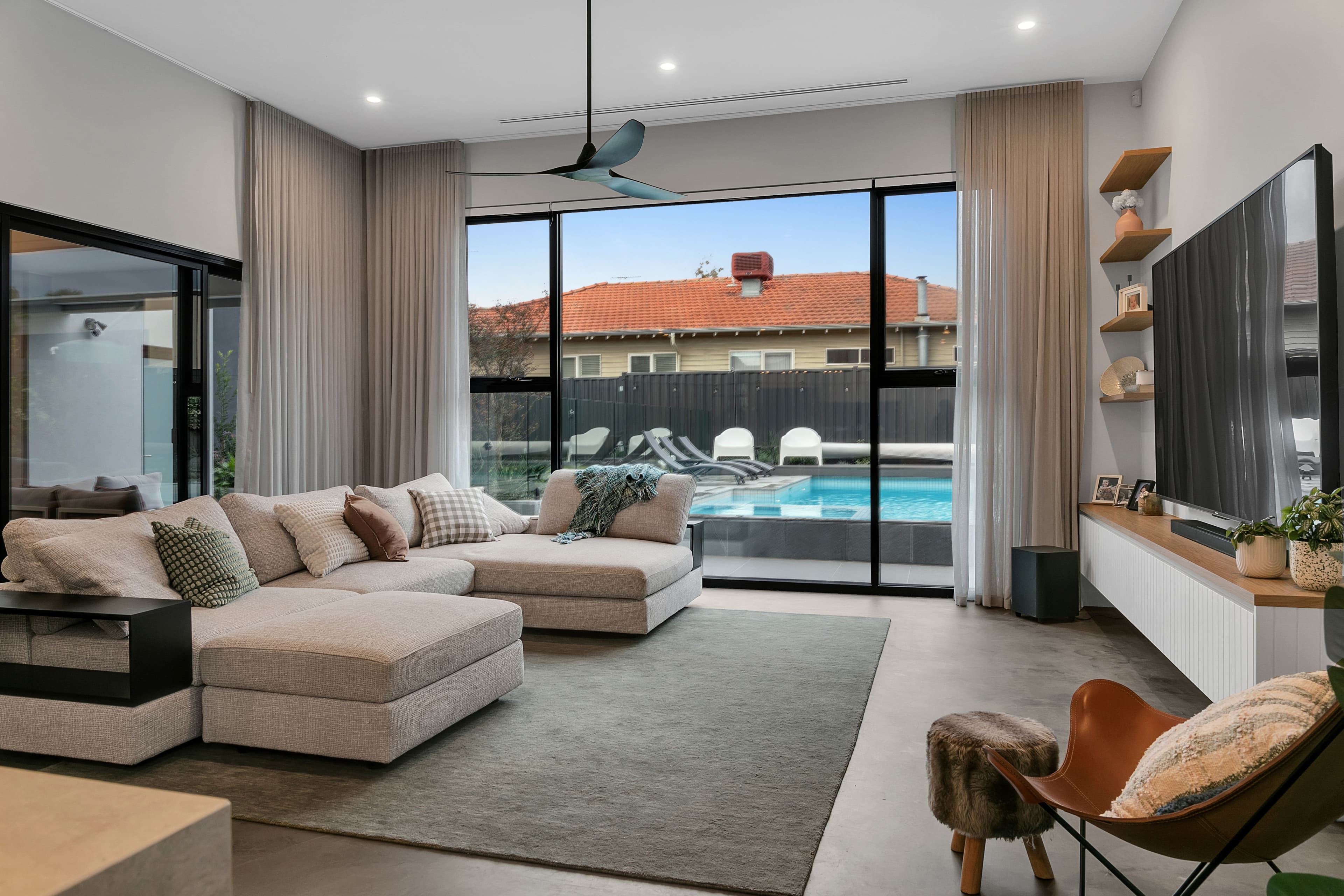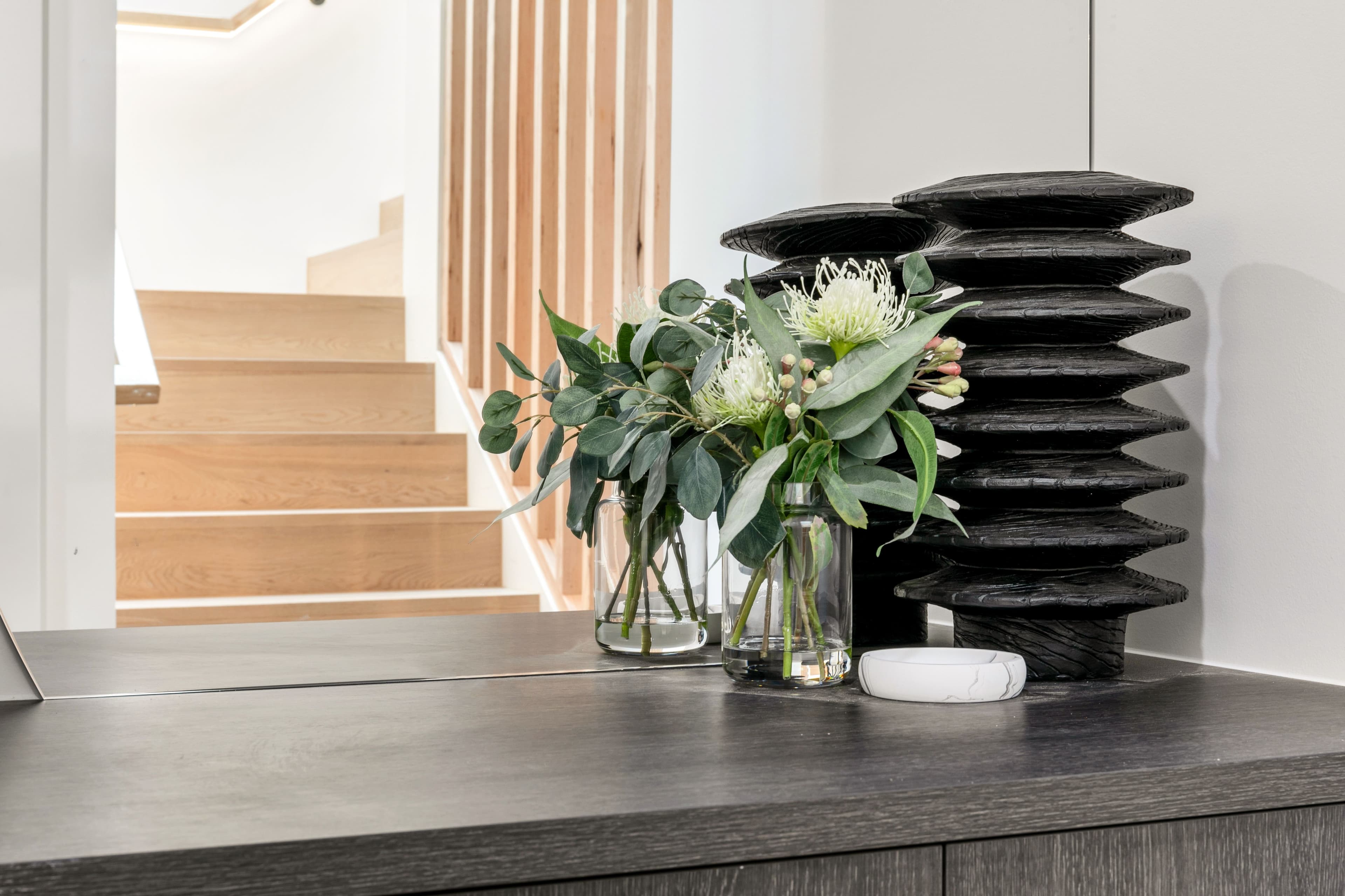 Step inside, and a meticulously curated journey unfolds. A long, elegant hallway, punctuated by subtle split-level transitions, leads you through the home - an architectural nuance that not only enhances spatial depth but also creates a natural rhythm of movement. This innovative layout optimises space, crafting distinct yet connected zones that enhance both intimacy and openness.