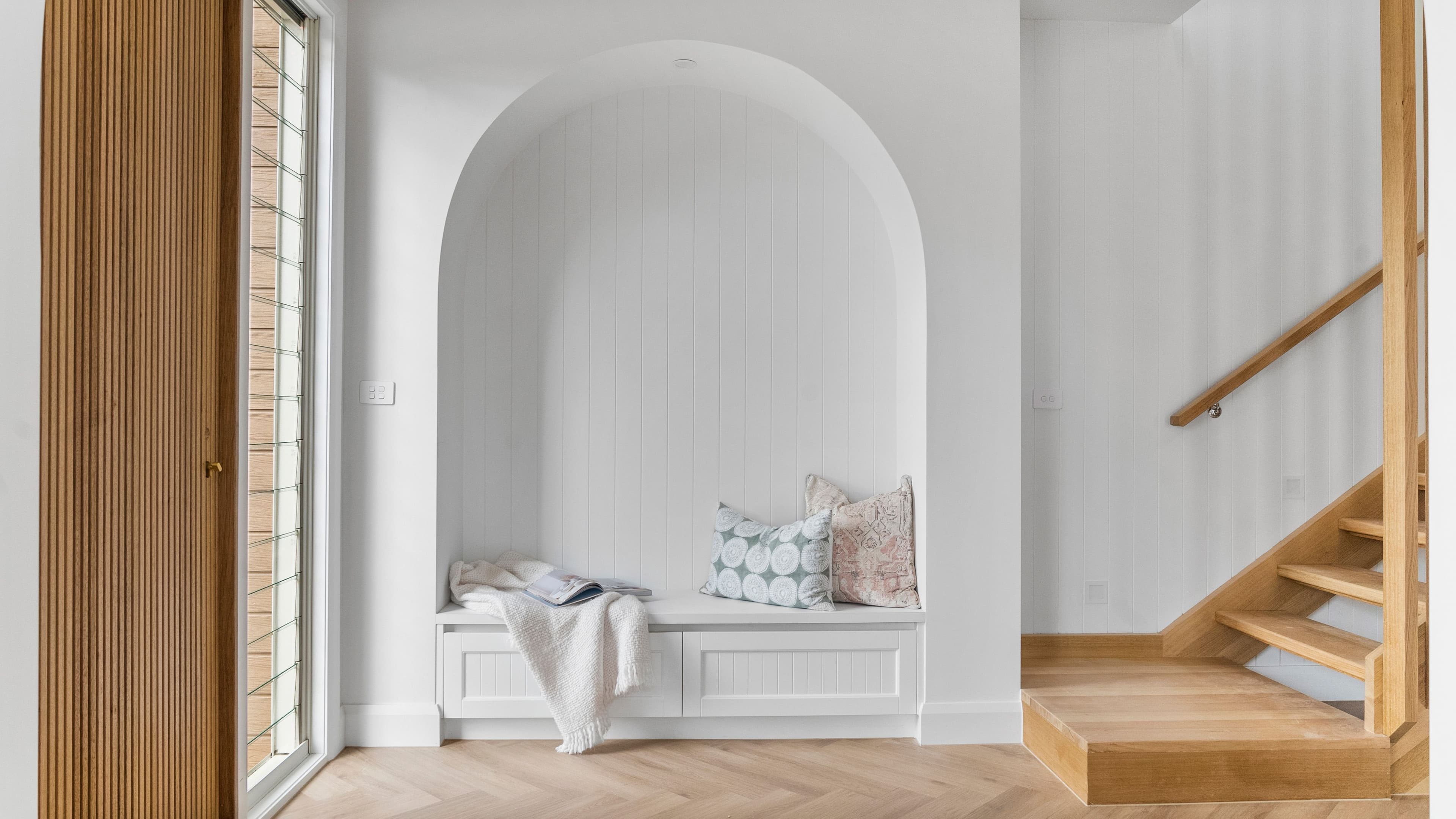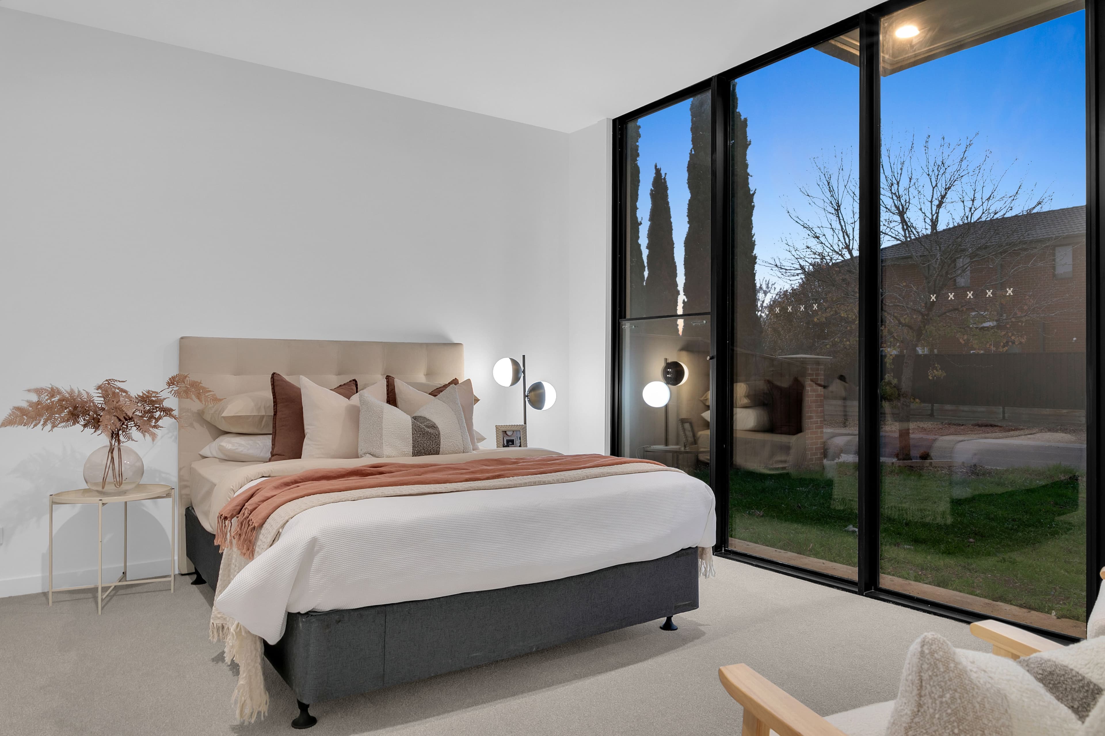 The façade of Claude Crescent is a bold statement, showcasing a harmonious blend of metal cladding, expansive glass windows, clean architectural lines, and warm timber elements. This carefully curated material palette creates an elegant yet commanding presence, setting the tone for the exceptional design found within.